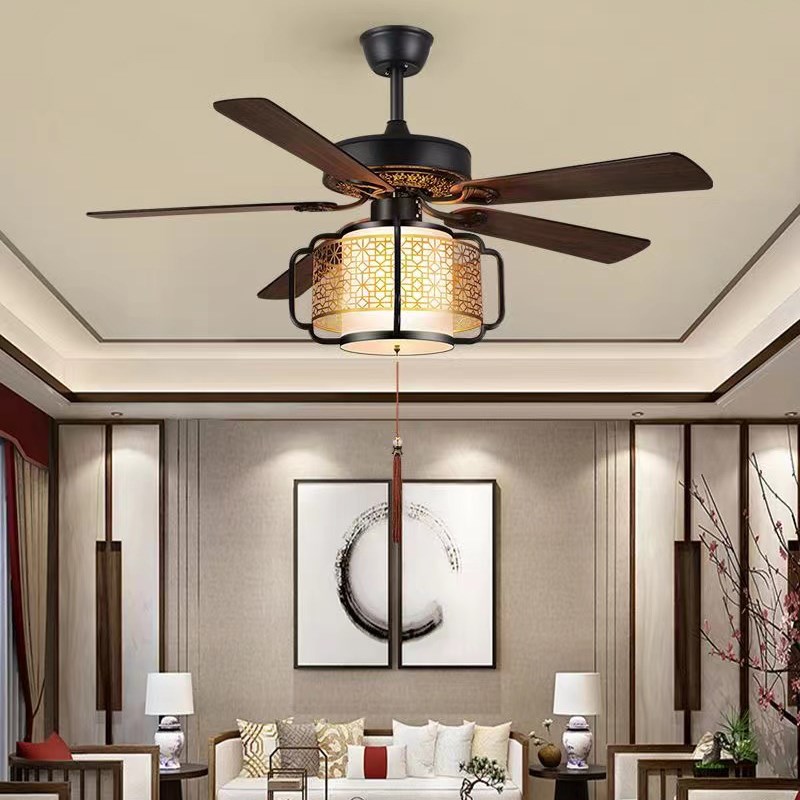新中式风扇灯 客厅餐厅卧室茶室吊扇中式吊灯家用复古静音吊扇灯