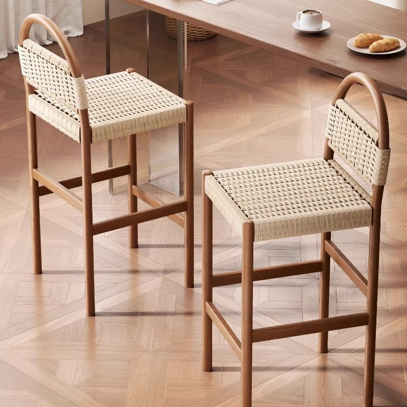 中古风实木餐椅家用小户型编织椅法式复古餐椅2025新款吧台前台椅
