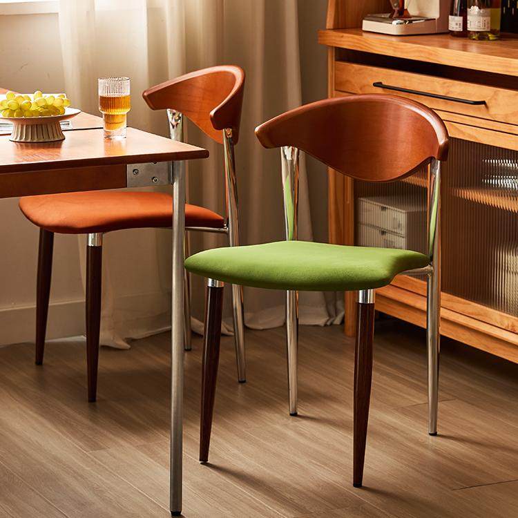 极简复古餐椅不锈钢实木靠背椅中古家用客厅小户型休闲可叠放椅子