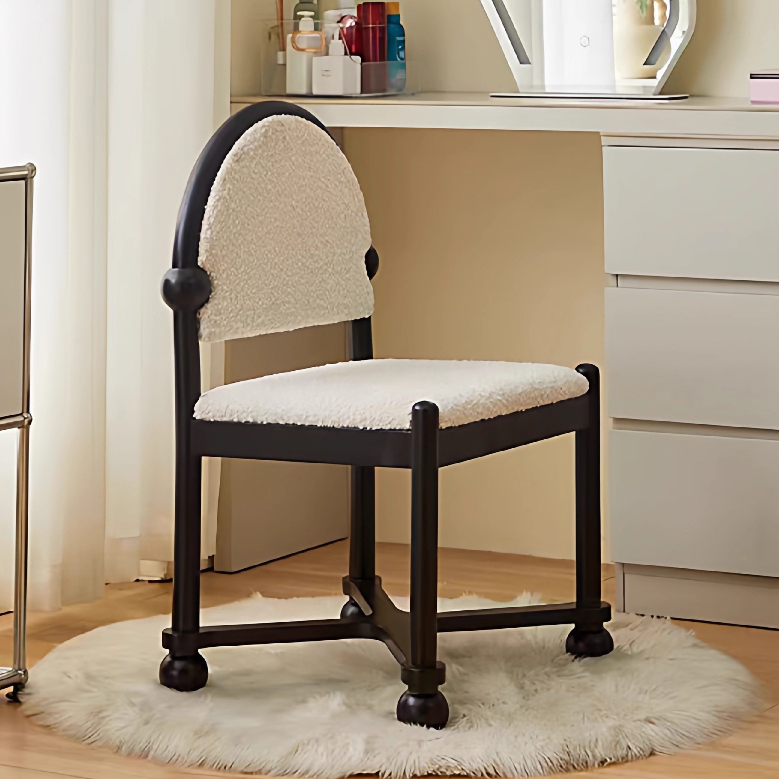 法式实木复古餐椅奶油风羊羔绒靠背休闲椅家用简约小户型化妆椅子