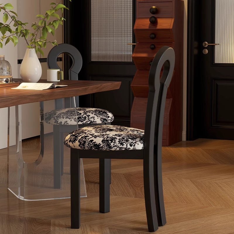 法式轻奢复古餐椅北欧简约家用中古实木冲冠椅设计师款靠背椅现代