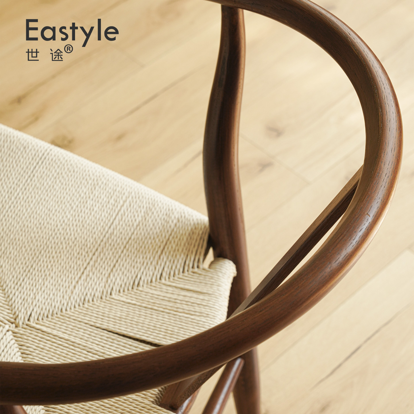 侘寂风实木新中式椅子北欧日式复古餐椅休闲椅藤编橡木叉骨椅圈椅