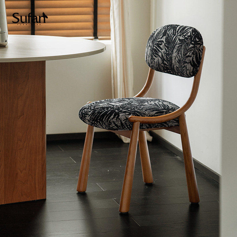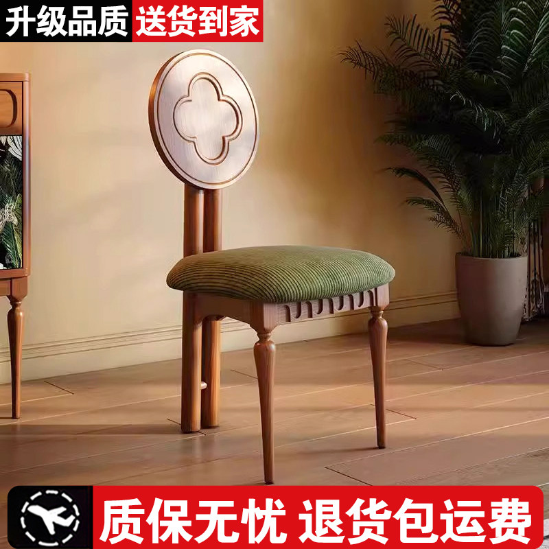 中古风法式复古白蜡木实木餐椅家用餐桌椅软包靠背椅休闲椅化妆凳