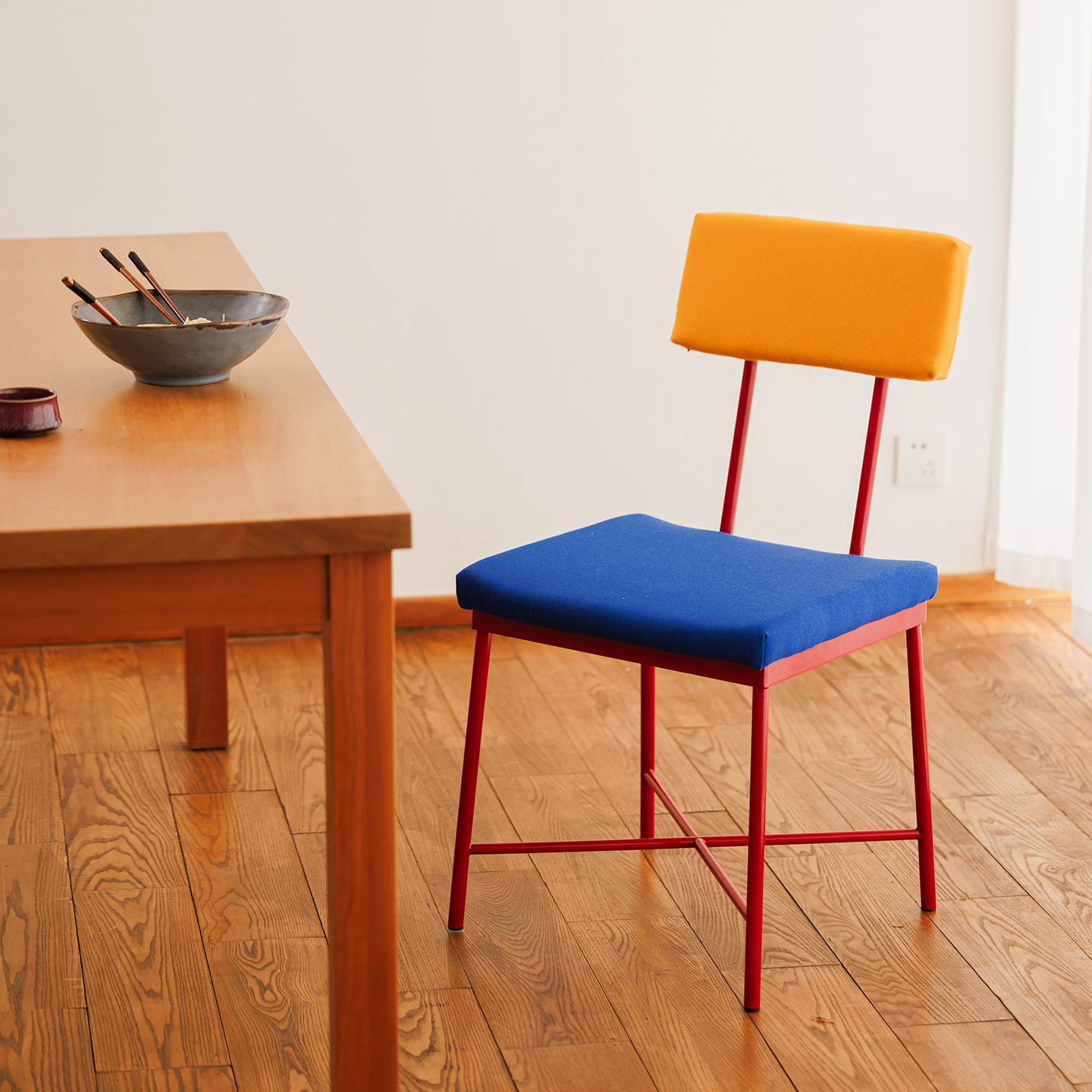 以山 格序餐椅 设计师椅中古风单椅复古餐椅彩色混搭靠背椅子拼色