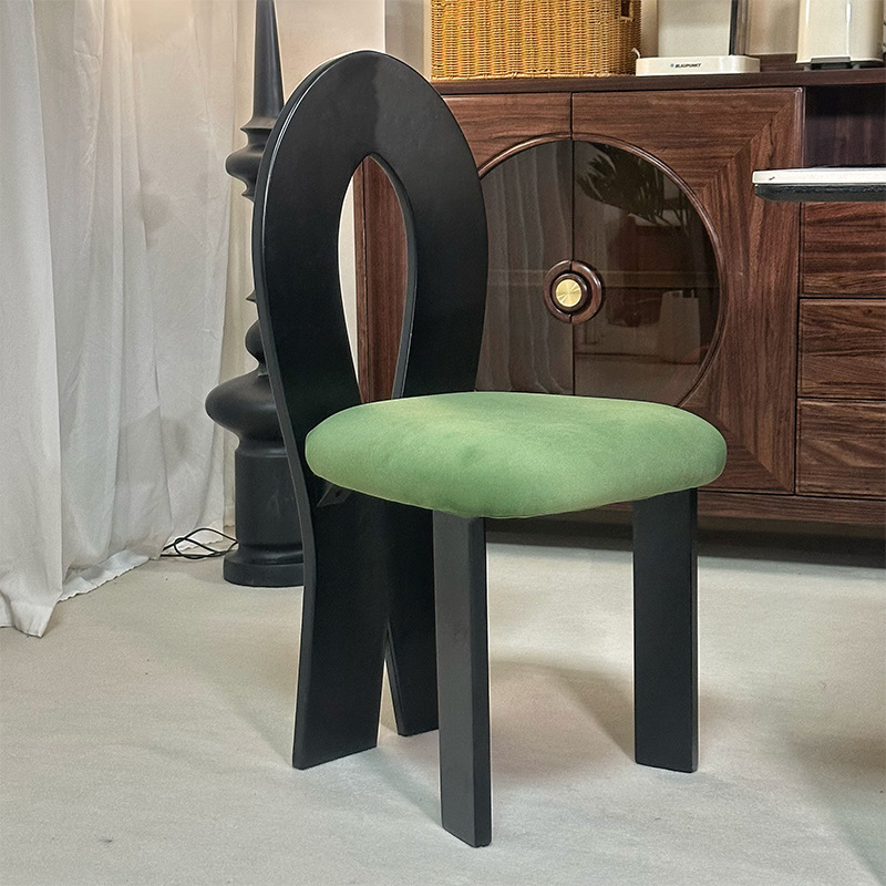 中古风休闲靠背椅家用小户型客厅餐桌椅子设计师丝绒坐垫复古餐椅