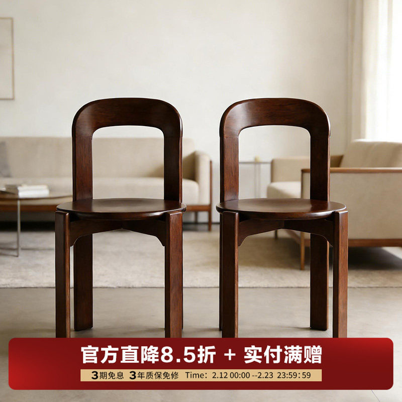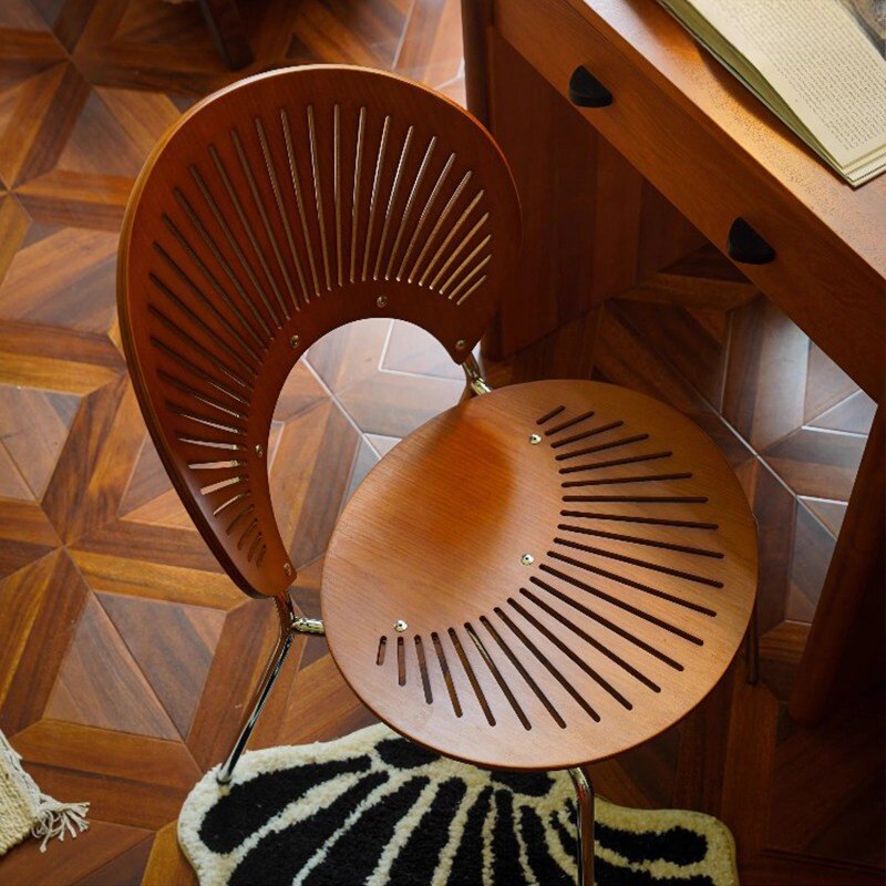 贝壳椅北欧实木餐椅家用简约复古太阳椅子中古茶桌木椅轻奢餐桌椅