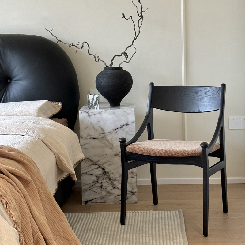 HITCHCOCK Curve/曲线椅 复古餐椅简约原木真皮工作椅Kvadrat艺术