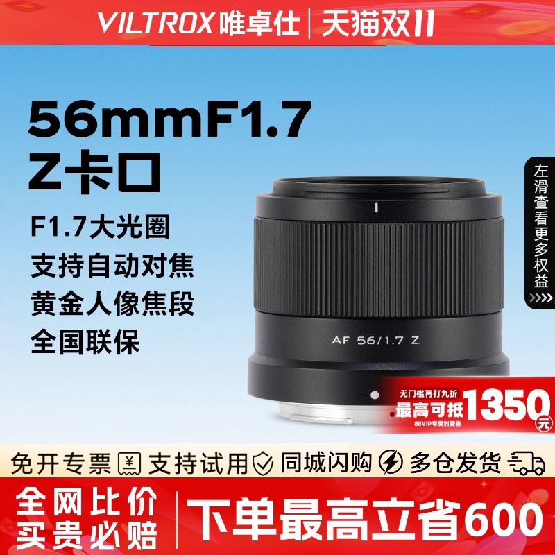 唯卓仕56mm F1.7大光圈定焦自动对焦人像镜头E/Z/X卡口微单相机