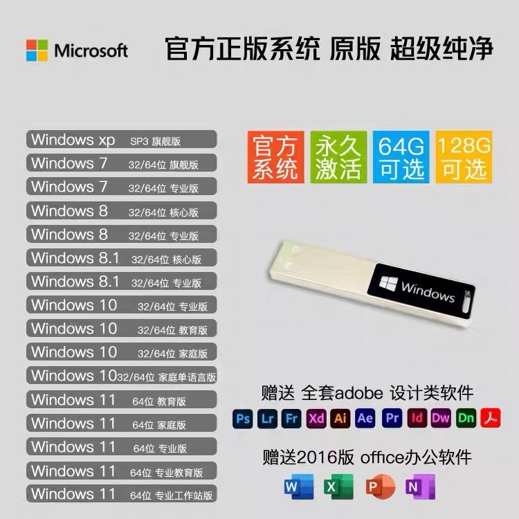 系统U盘win11专业版10家庭一键安装激活PE启动7旗舰版xp电脑优盘