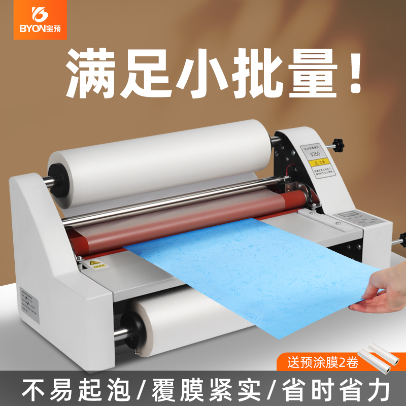 宝预350G钢辊覆膜机台式电动热覆膜机宣传单腹膜机冷裱机单面双面复膜广告热裱机热裱膜压膜机预涂膜封膜机