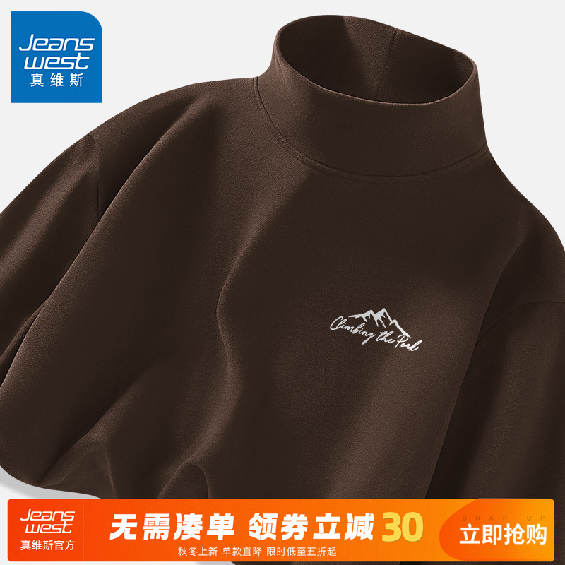 GV真维斯男款高领打底衫秋冬季双面绒德内衣男士内搭保暖套头T恤A