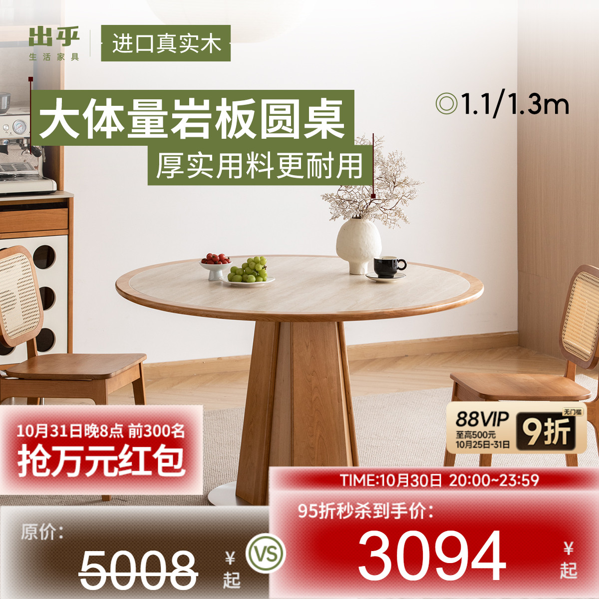 出乎生活山海实木岩板圆桌樱桃木家用客厅小户型圆形餐桌餐厅桌子