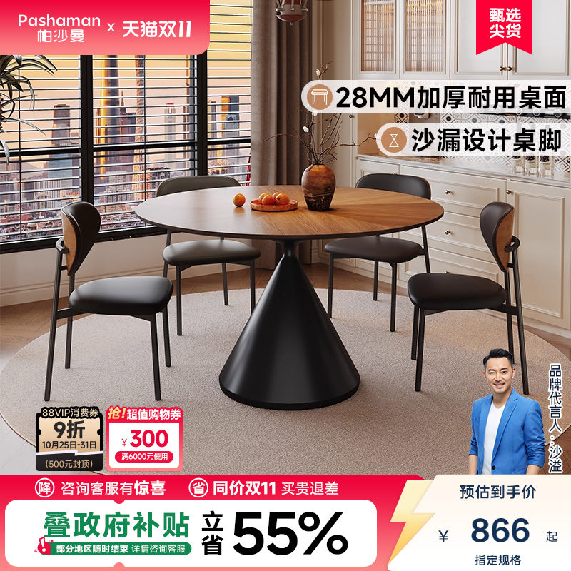 帕沙曼圆形餐桌椅组家用小户型复古中古风碳素钢桌脚家用吃饭桌子