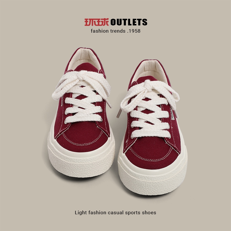 环球2025小众厚底酒红色帆布鞋情侣款爆款鞋子女学生板鞋百搭夏季