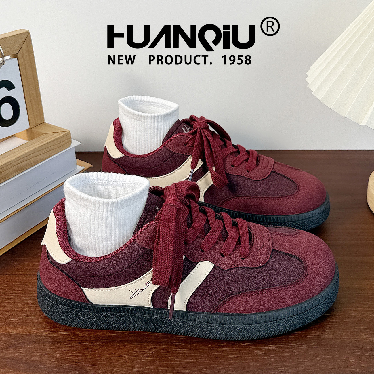 环球酒红德训鞋女款2025新款夏季舒适轻便鞋子女学生时尚百搭板鞋