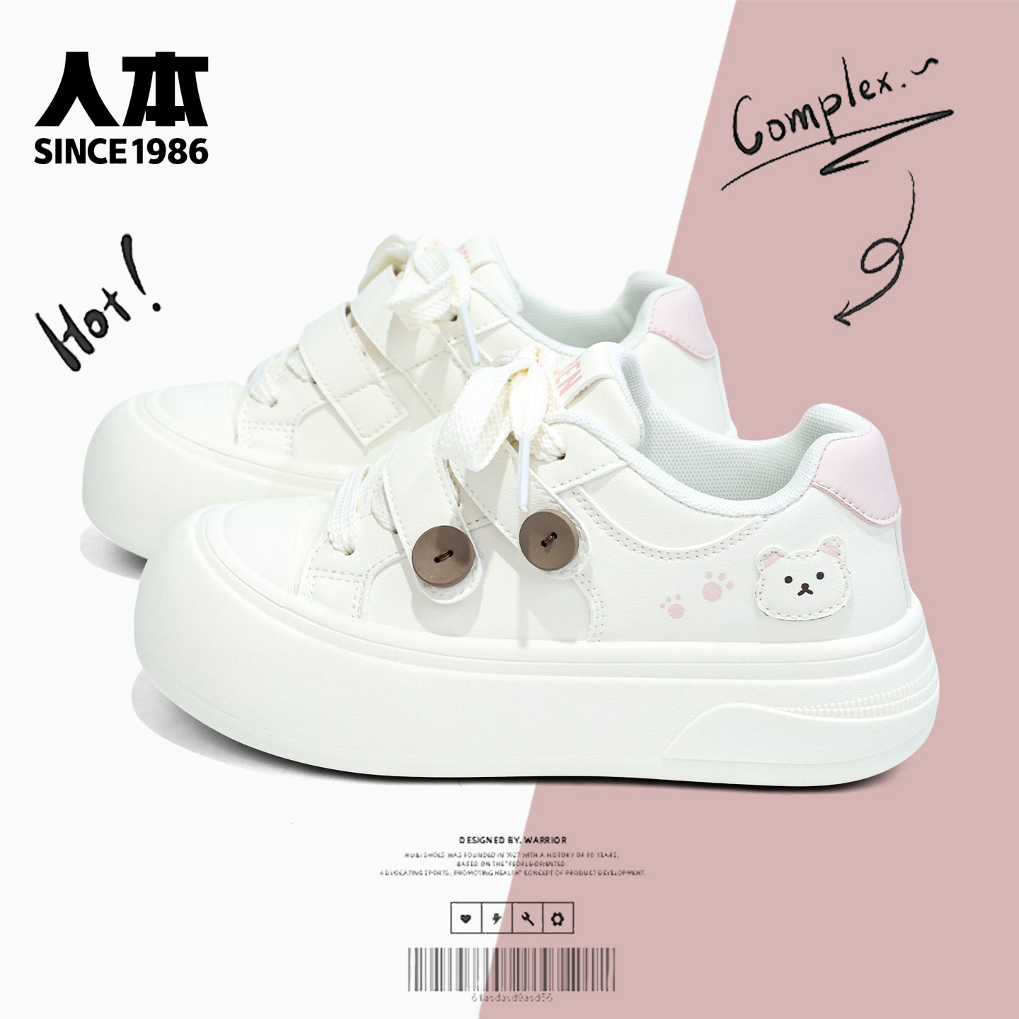 人本可爱小熊小白鞋子女学生百搭厚底运动休闲板鞋潮2026春季新款