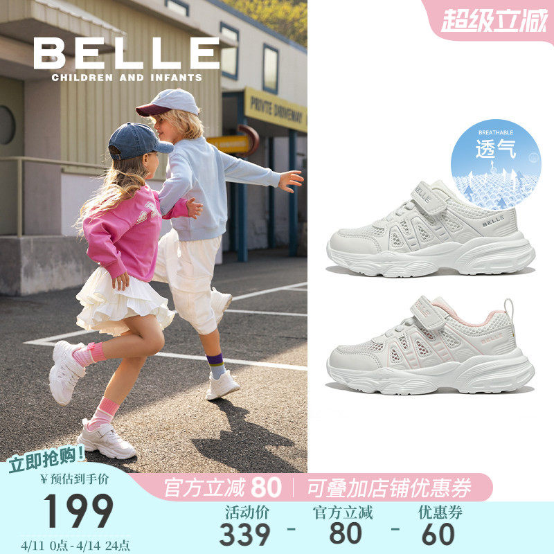 百丽童鞋儿童小白鞋女童运动鞋春季新款学生校园鞋男童透气网面鞋