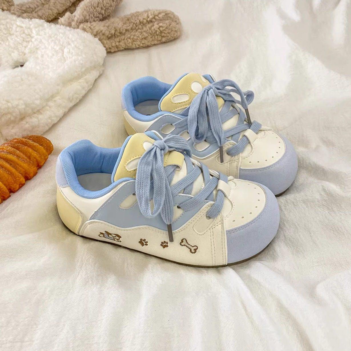 今年流行的板鞋女款2024新款爆款面包鞋原创小众蓝色系鞋子女学生