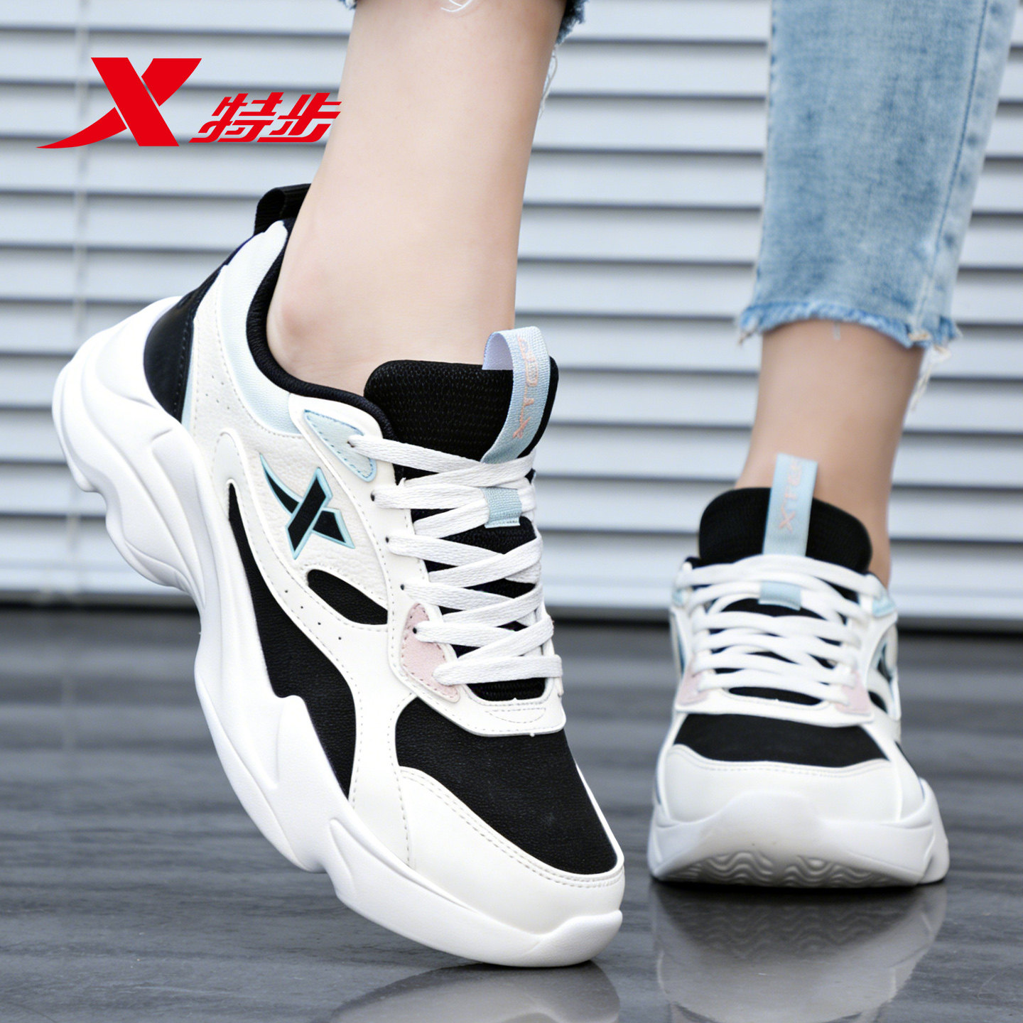 特步女鞋2026新款跑步鞋皮面休闲鞋子女学生老爹鞋正品运动鞋女款