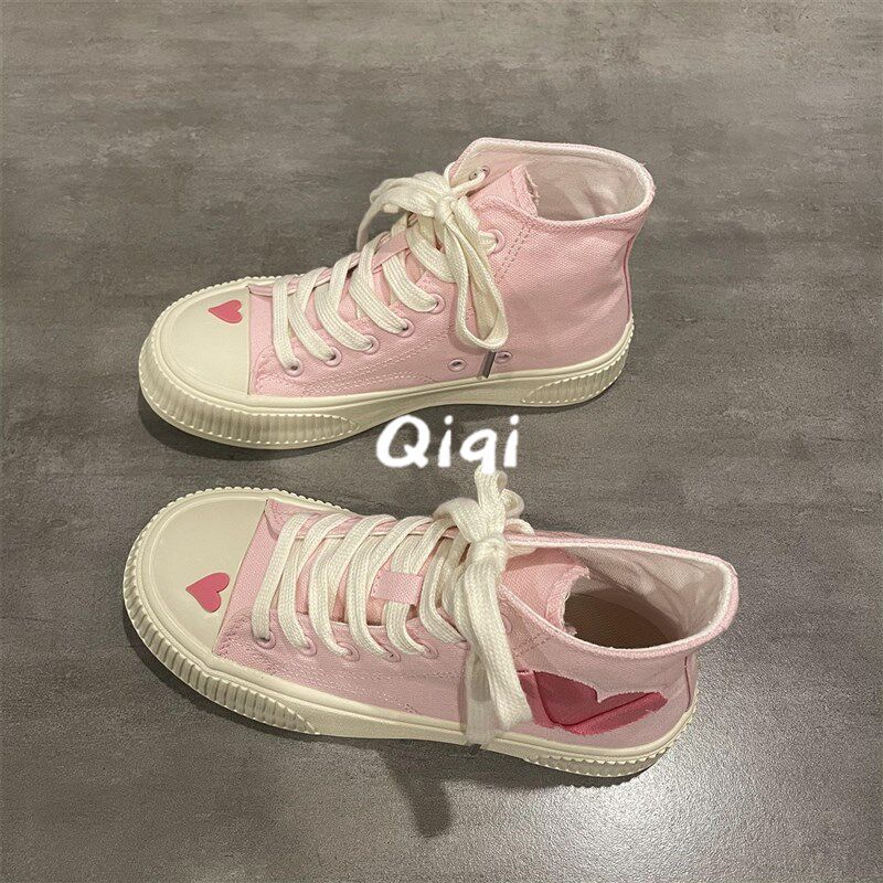 七七主人家 粉色少女心可爱帆布鞋女高帮L鞋子女学生百搭板鞋仙女