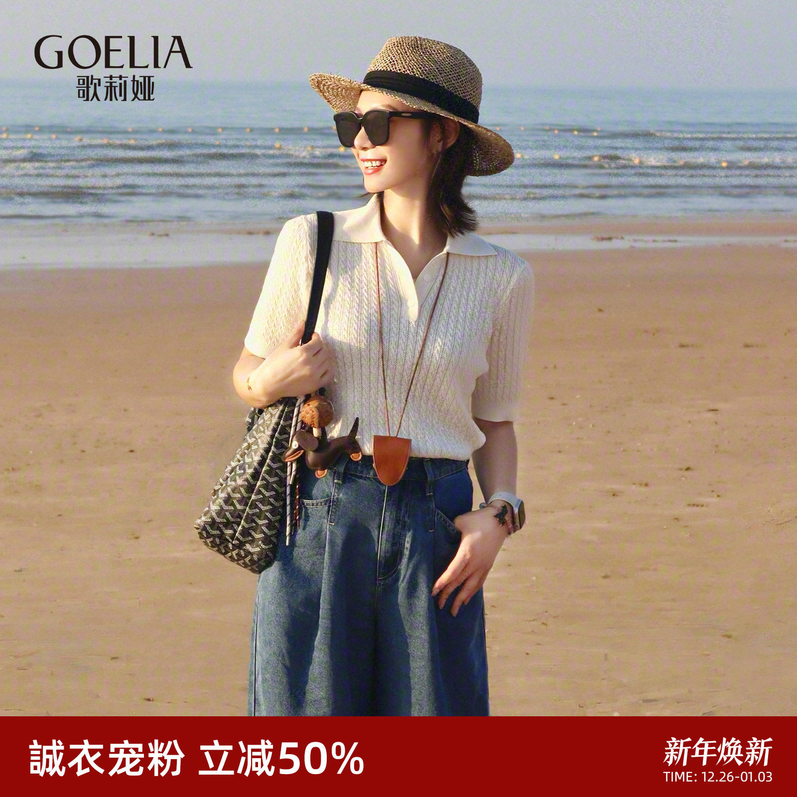 首降3折|歌莉娅莱赛尔短袖POLO上衣女2025新款通勤穿搭T恤