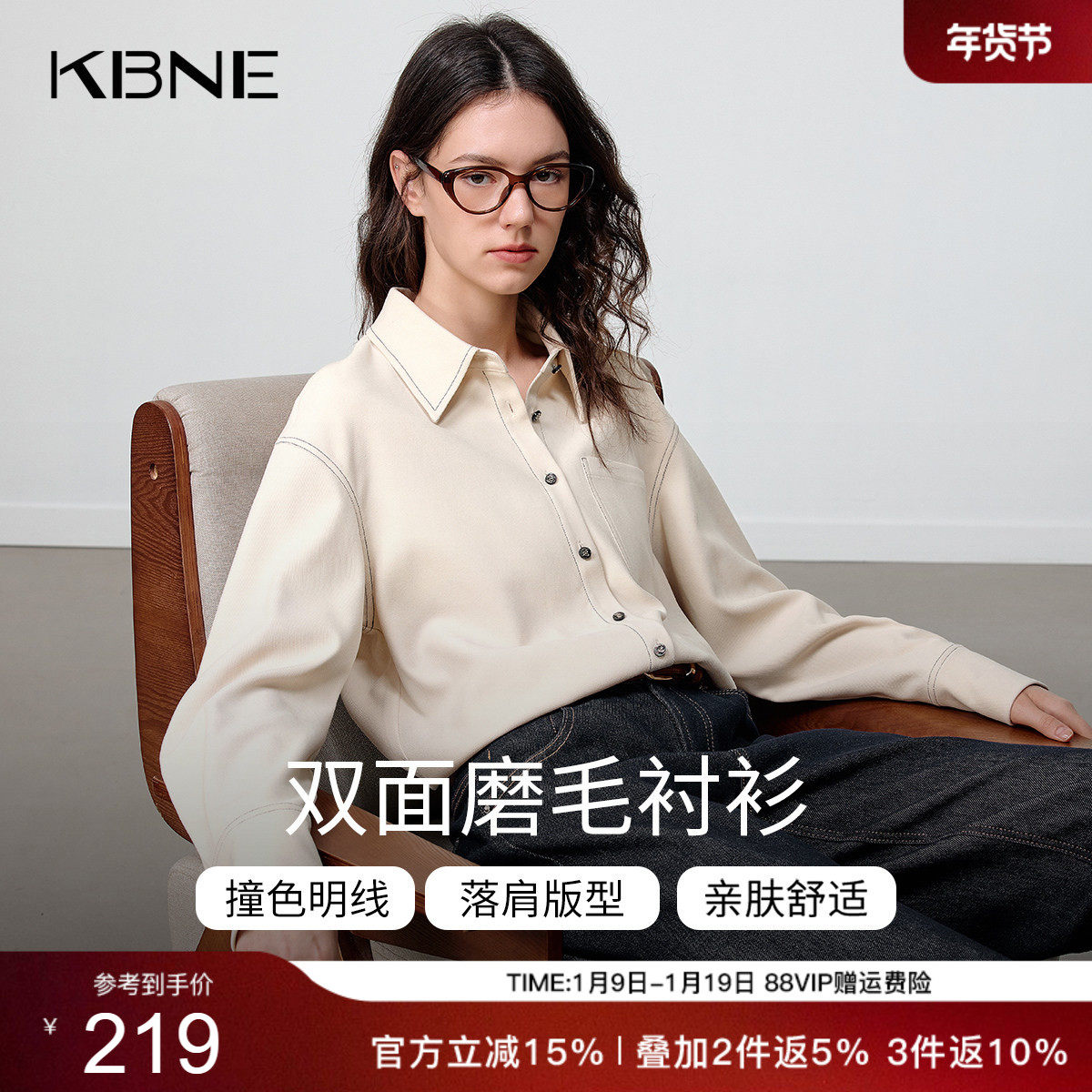 KBNE高智感双面磨毛衬衫女装2025冬季新款长袖法式衬衣高级感上衣