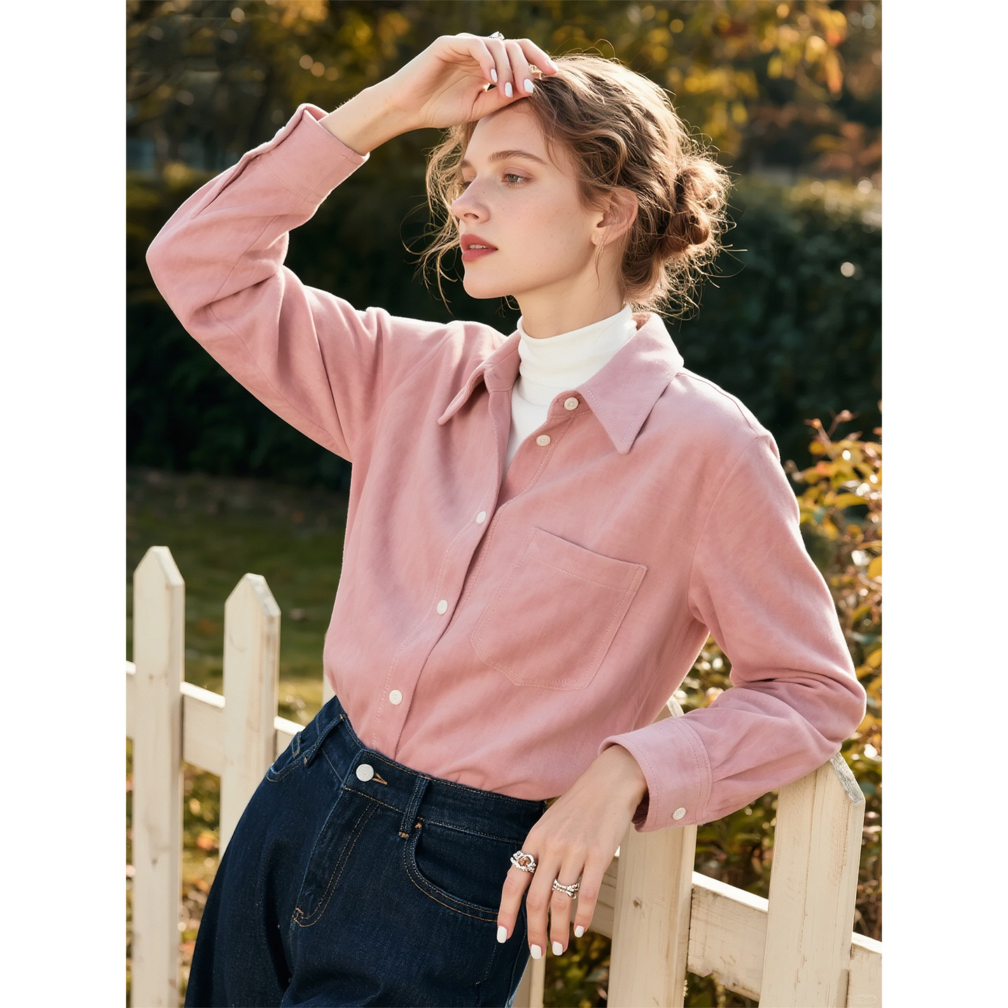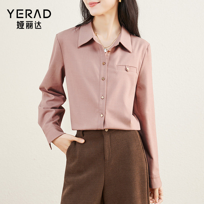 娅丽达高级通勤加厚磨毛衬衫女冬季新款上衣宽松长袖外套粉色衬衣