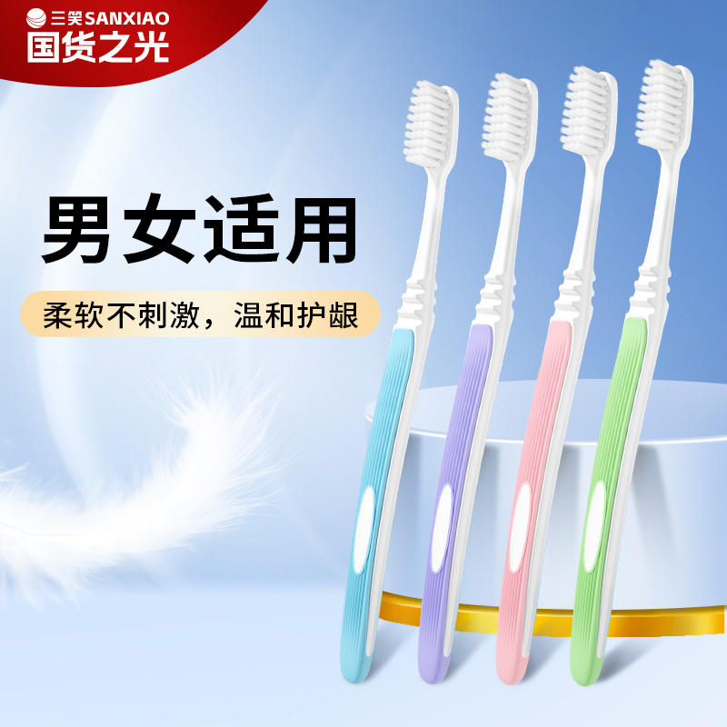【弹力刷颈 减压护龈】三笑细软毛小头牙刷成人家庭装家用囤货装