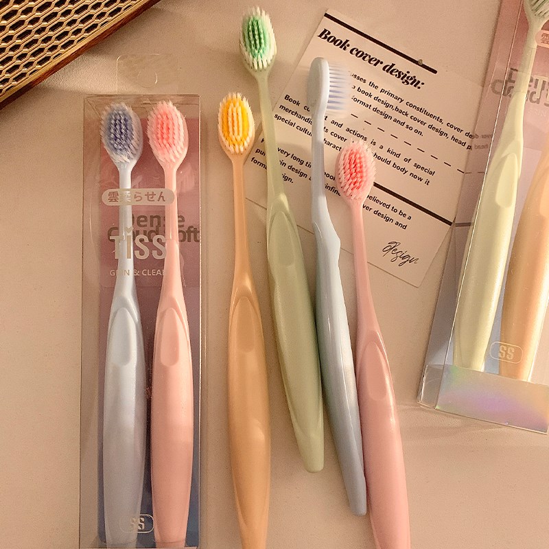 多巴胺水晶柄软毛小头牙刷成人家用家庭装情侣宽头细毛清洁牙刷女