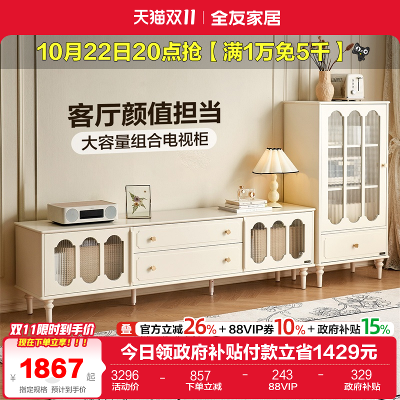 全友家居2025新款法式奶油茶几电视柜组合客厅家用实木脚电视机柜