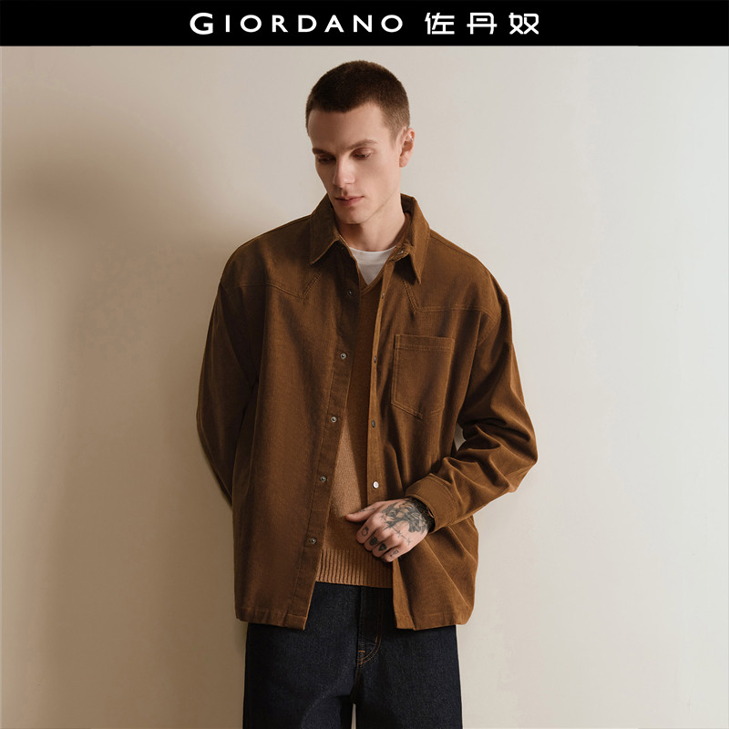 设计师款佐丹奴衬衫外套男春季新款纯棉灯芯绒翻领夹克男18075805