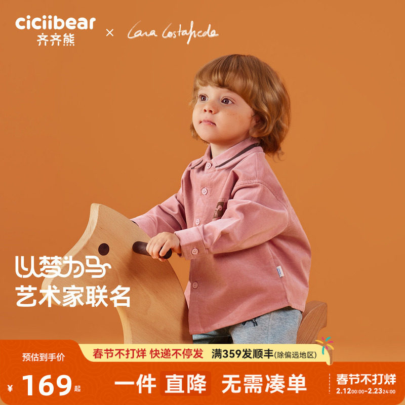 [纯棉灯芯绒]齐齐熊宝宝衬衫男童外套春秋装儿童长袖衬衣休闲上衣