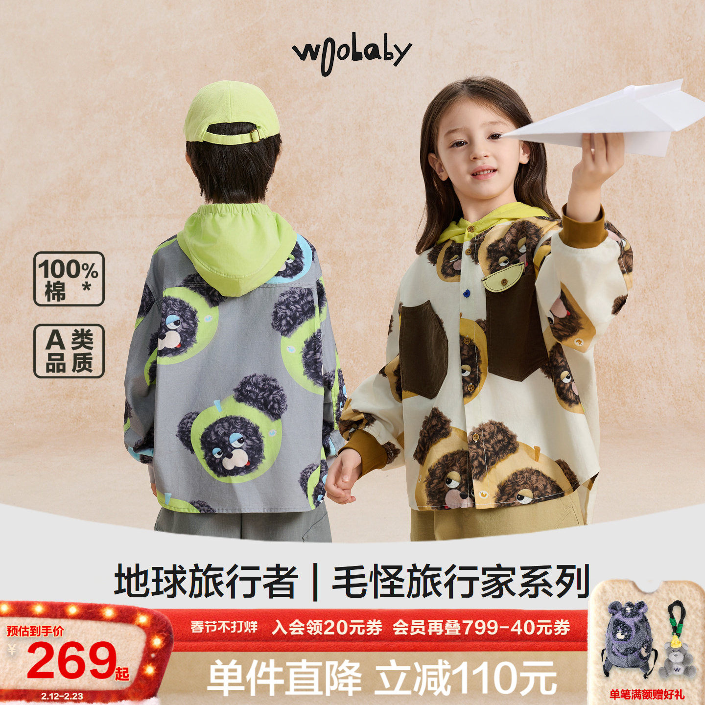 [毛怪]woobaby儿童纯棉连帽衬衫男童女童25秋季古灯芯绒外套上衣