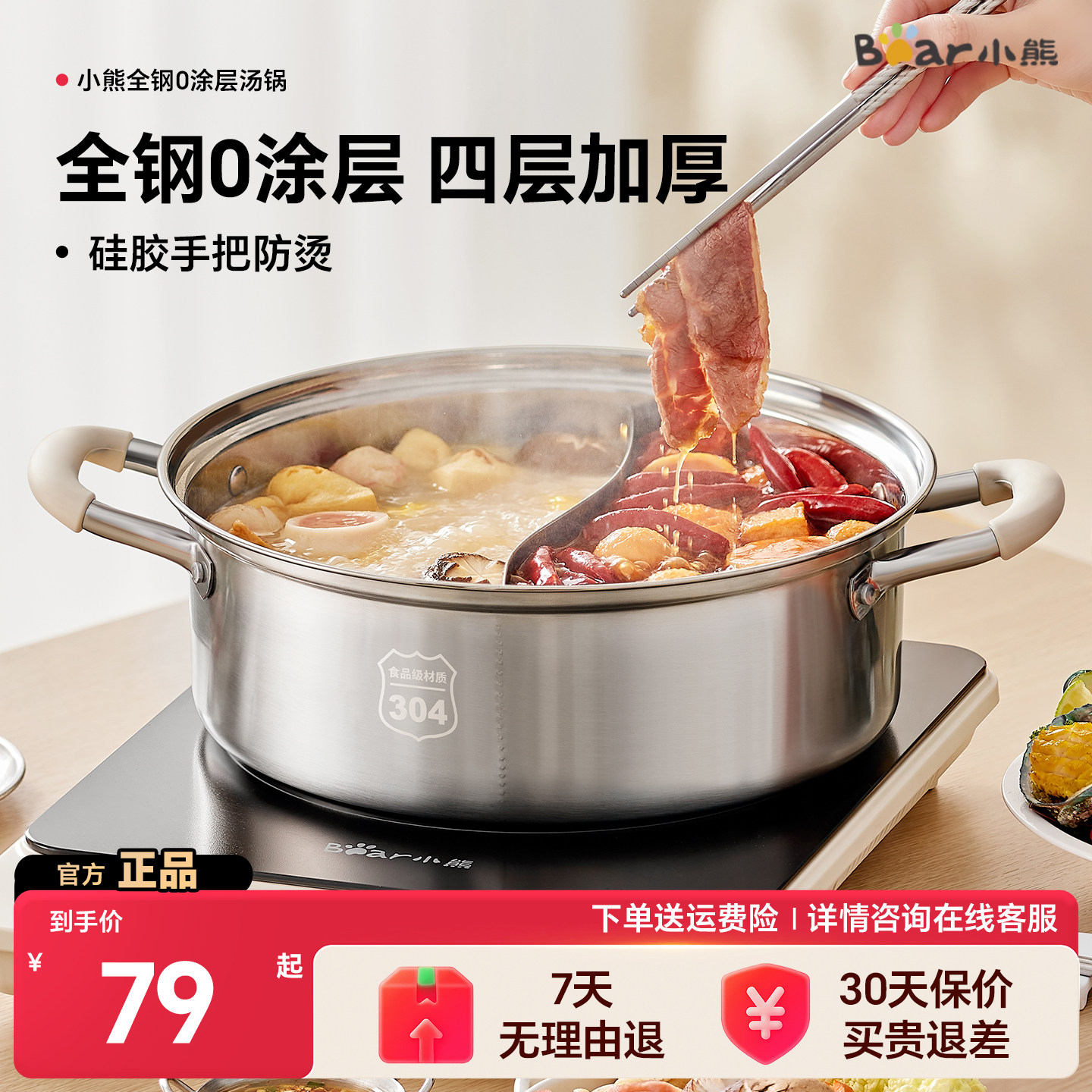 小熊鸳鸯锅火锅家用电磁炉专用锅具加厚304不锈钢火锅盆汤锅单锅