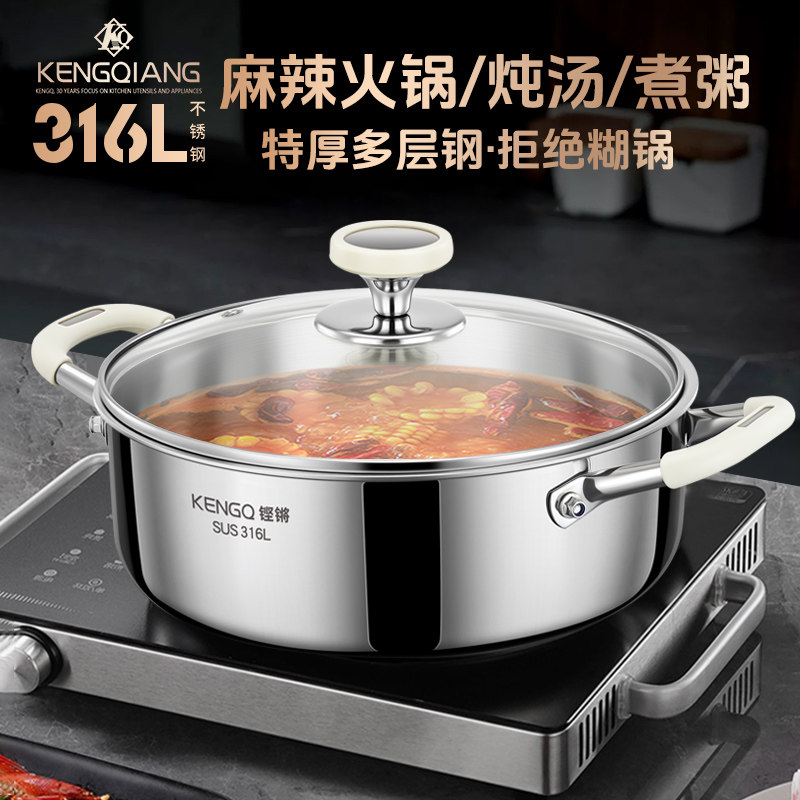 316L不锈钢火锅鸳鸯锅家用食品级加厚火锅盆打边炉专用电磁炉汤锅