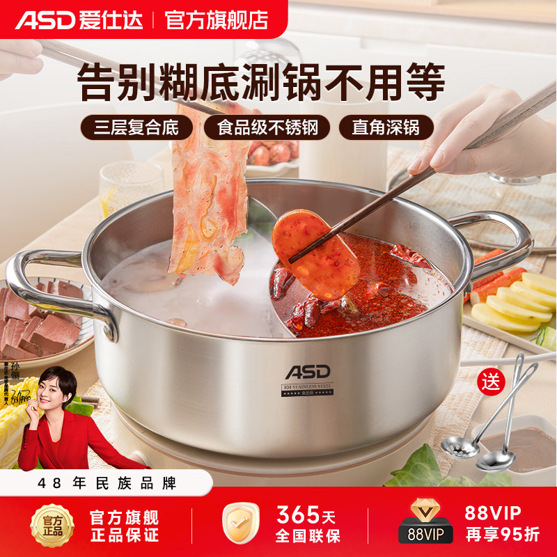 爱仕达鸳鸯锅/清汤锅304不锈钢电磁炉专用加厚火锅盆火锅锅具家用