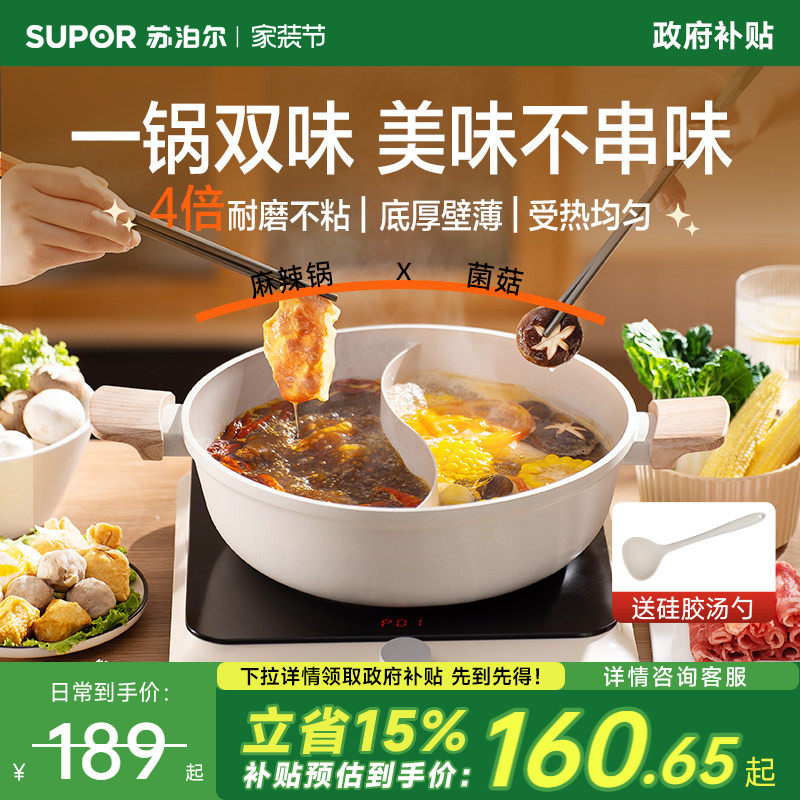 苏泊尔鸳鸯火锅家用电磁炉专用锅304不锈钢一人锅火锅盆大容量