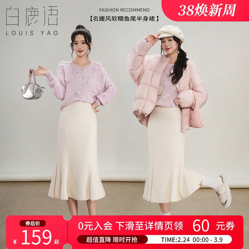 白鹿语名媛风软糯鱼尾半身裙25秋冬新款高腰显瘦百搭A字包臀长裙
