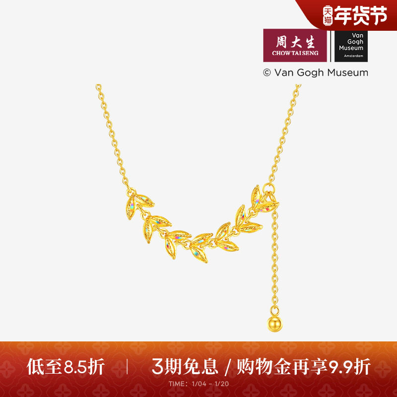 周大生梵高联名|黄金项链女5G足金穗穗平安锁骨套链爆闪麦穗吊坠