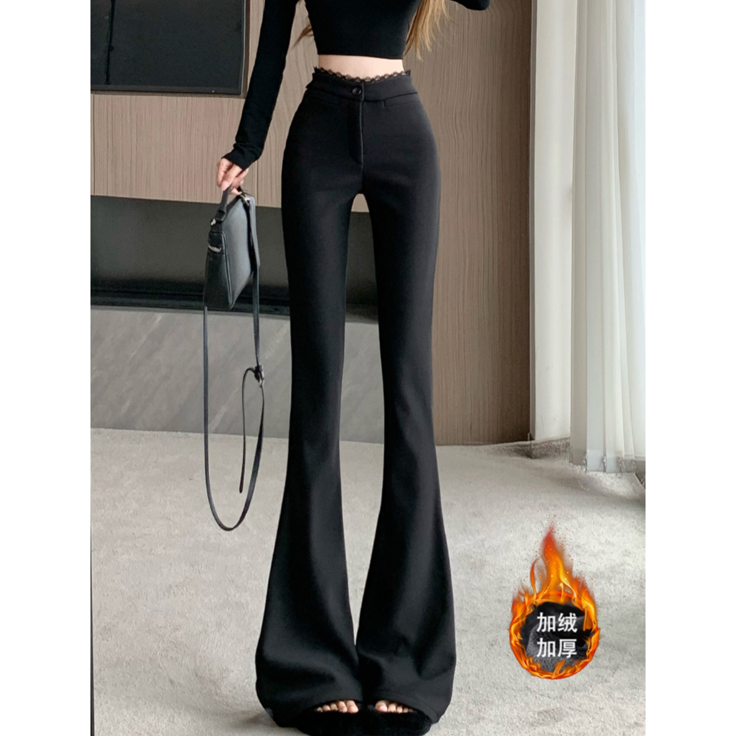 逸阳加绒加厚弹力微喇裤女秋冬新款大码显瘦黑色西装裤喇叭休闲裤