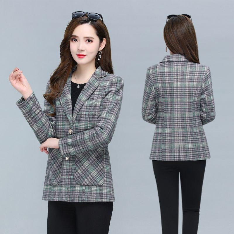中老年格子大码女西装妈妈装时尚洋气款单层西装妈妈衣新格子西装