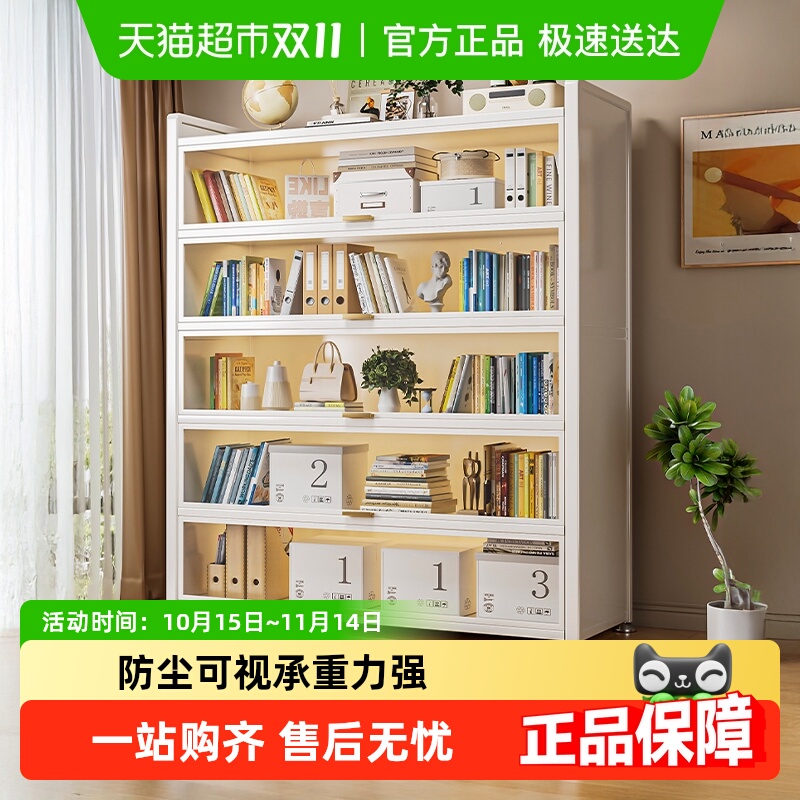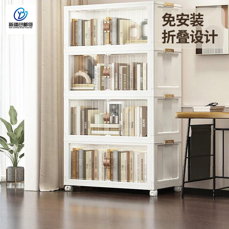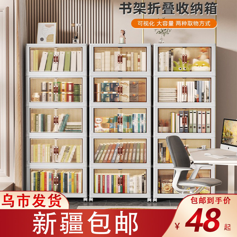 新疆包邮哥书架置物架落地折叠简易书柜家用带门置物柜防尘收纳柜
