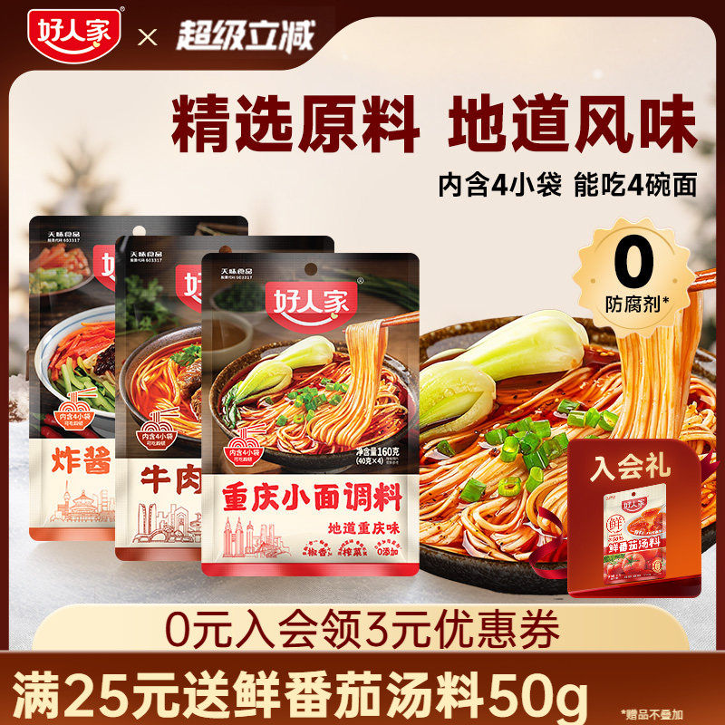 好人家重庆小面调料40g*4袋麻辣拌面酱牛肉面条专用佐料下面酱料