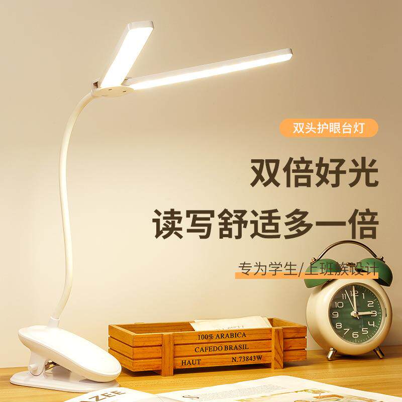 跨境夹子台灯双头护眼照明LED充电护眼学习儿童学生台灯宿舍卧室