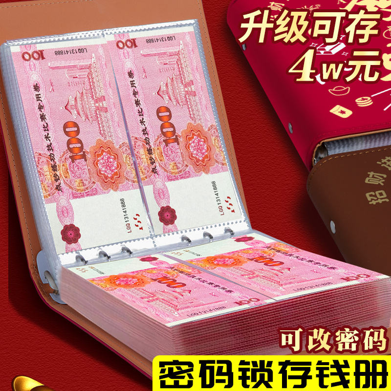 存钱夹钱册2025年新款密码锁现金存钱本纸币钱币人民币收藏册百元钞票收纳册儿童理财可放现金一万攒钱活页本