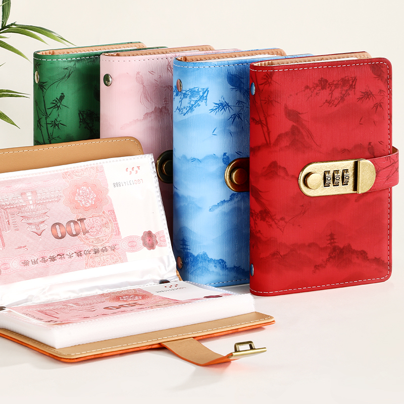 水墨风现金存钱本密码锁2025年新款存钱夹钱册a6记账本攒钱本人民币收藏册大容量现金收纳包存钱本可放一万元