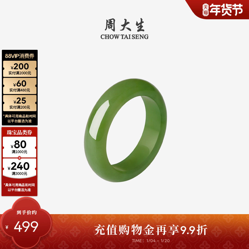 周大生天然和田玉手镯女清川青玉镯子新中式平安镯送女友新年礼物