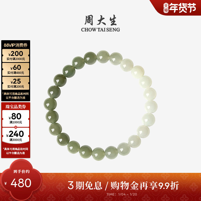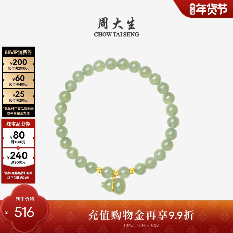 周大生和田玉渐变手串男女情侣款玉石清风徐来手链送男友新年礼物
