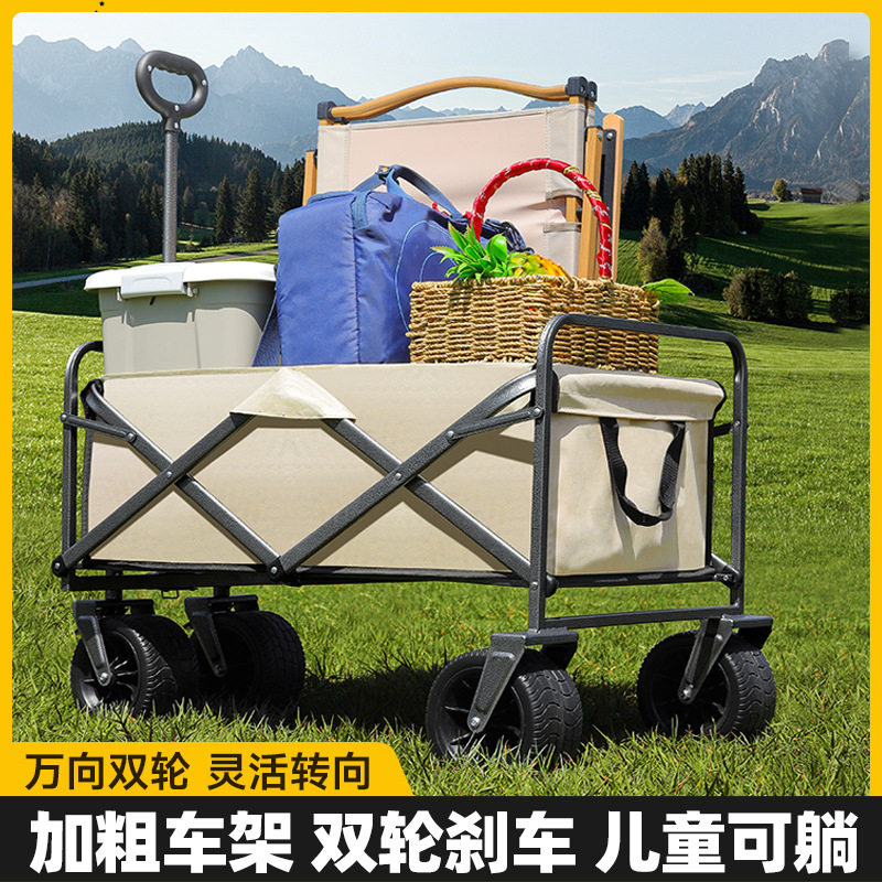 露营车户外可折叠野餐手推车儿童可躺野营拖车摆摊旅行超大营地车