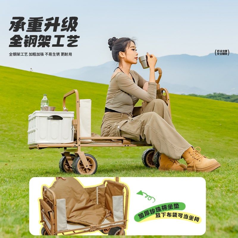 疆屿户外露营手推车营地车摆摊折叠野营拖车野餐车儿童可躺旅行车
